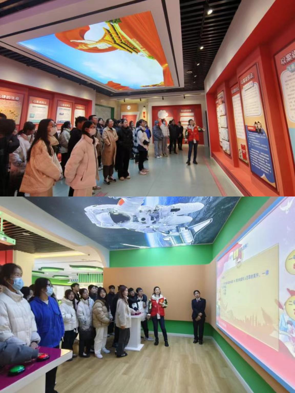 最后一站来到了市检察院法治展厅,在漯河市检察院检察官的引导下,老师和员工们依次参观了“光明指引”“引以为戒”“以爱之名”和“为了明天”四个展区,观看了警示教育宣传片,忘情地沉浸在知识海洋里。展厅还设置了法律抢答、职业场景虚拟成像,以及通过VR技术感受校园欺凌、吸毒前后面部对比等互动设备和体验游戏,以较强的互动性和参与性模式对参观者开展法治教育、安全教育和自护教育。活动最后,员工分组参与心理测评工作,帮助员工缓解压力,为员工培养了积极的思维模式、激发了学习的动力。