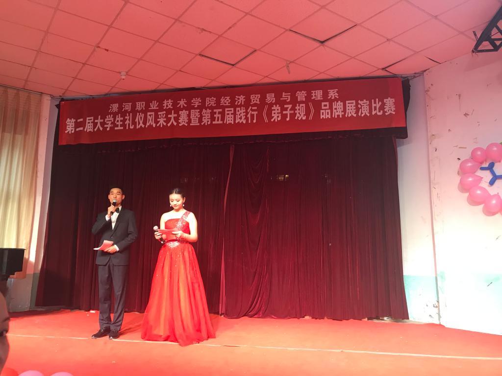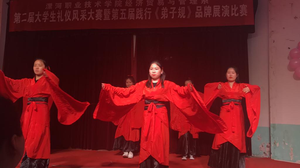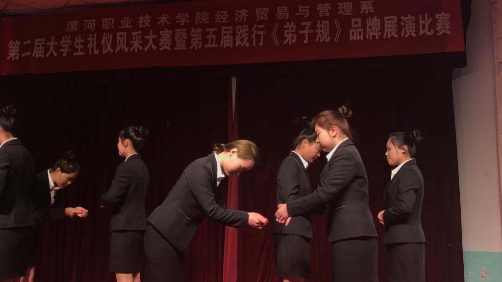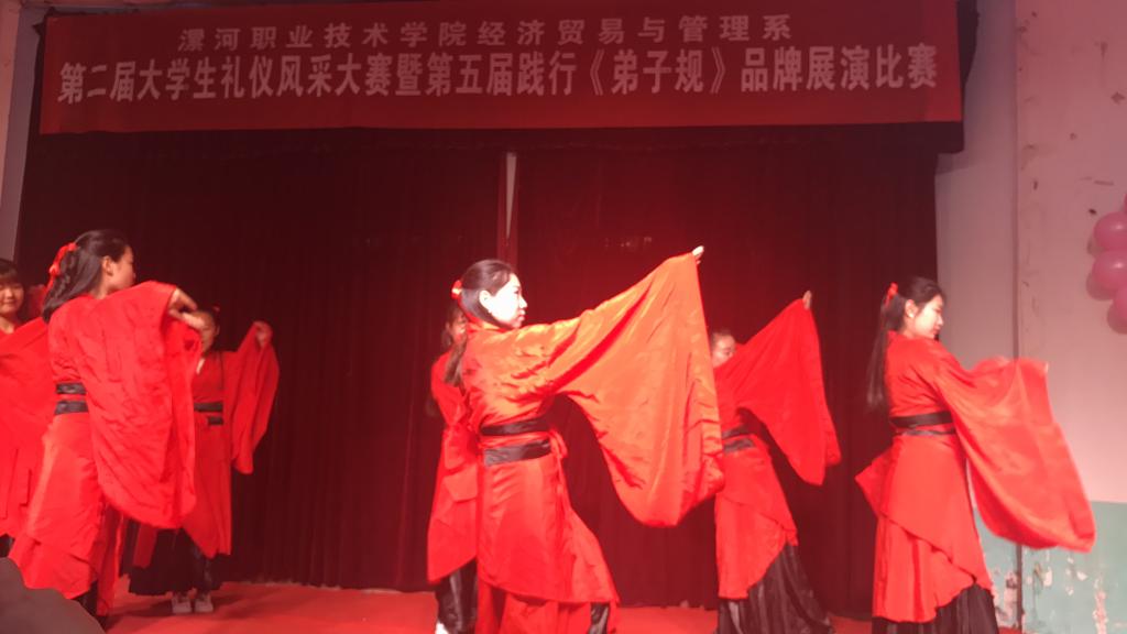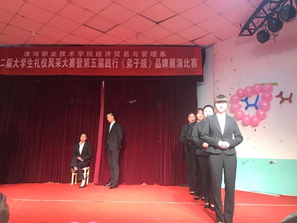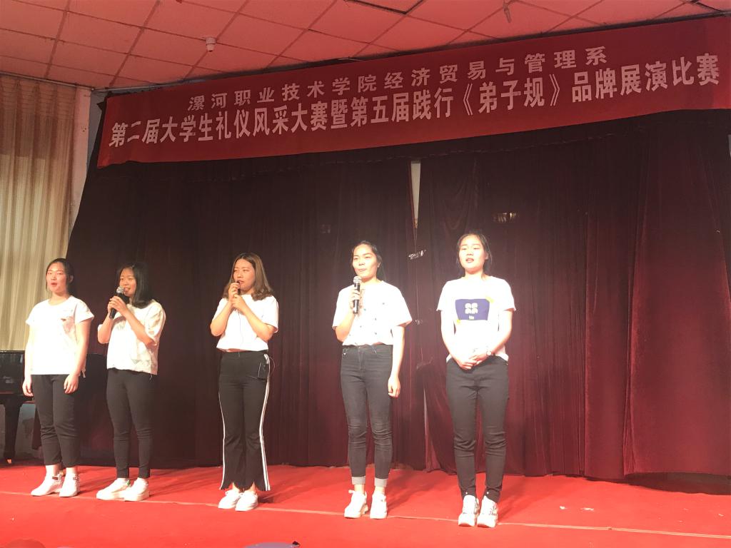 中华优秀传统文化是传承民族智慧、民族精神和民族美德的重要载体,具有教导人生真理、规范世俗行为的重要功能。经济贸易与管理系团总支于2017年5月5日下午在院小礼堂举办了第二届老员工礼仪风采大赛暨第五届践行《弟子规》品牌展演。出席本次会议的领导有我系主任兰涛、副主任杨慧珍、办公室主任李炎超、办公室副主任王珂琦、团总支书记李文静以及我系的各位老师和全体同学。