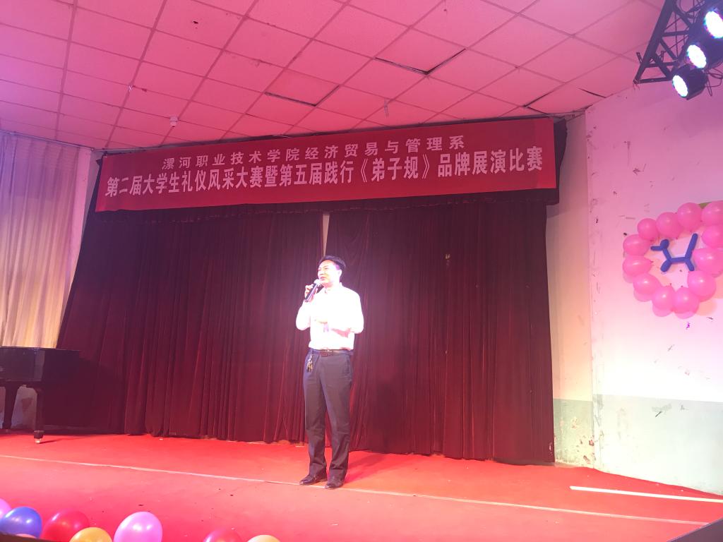 活动最后由我系系主任兰涛发表讲话。他不仅对参赛人员的出色表演给予肯定,也指出“礼仪”二字即“礼”在心中,“仪”在行动。我们不仅要学“礼”也要懂“礼”第二届老员工礼仪风采大赛暨第五届践行《弟子规》品牌展演比赛不仅把礼仪展现的淋漓尽致,同时也让同学们学到了怎样做才算有“礼”,希望经管系的同学们能再接再厉,都做有“礼”之人。