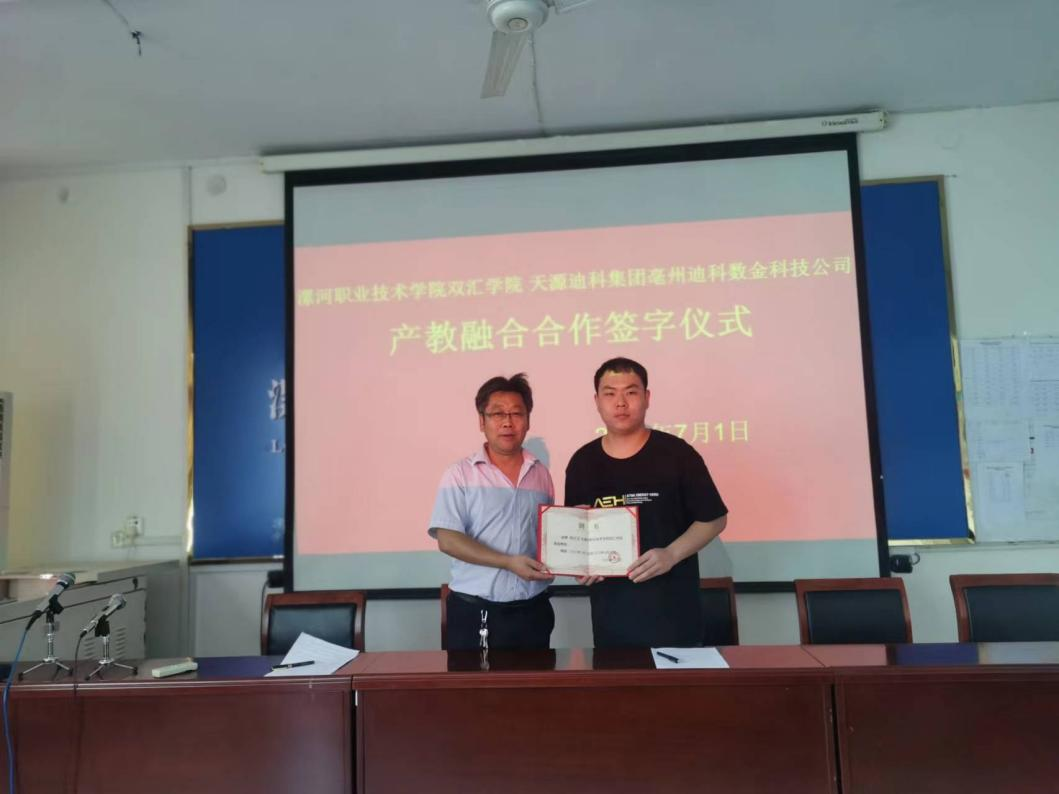 2021年7月1日,双汇公司全体领导班子和实习指导教师共同欢送19级金融管理专业毕业生赴亳州迪科数金科技公司实习。当日,公司领导热情接待前来接送员工的公司人力资源的相关领导,双方就员工就业实习、校企合作、产教融合等方面达成共识,共同签订了《校企合作协议书》,并表示希望今后能够建立更加紧密的合作关系,共同发展,深入推动校企合作,实现校企互助共赢。