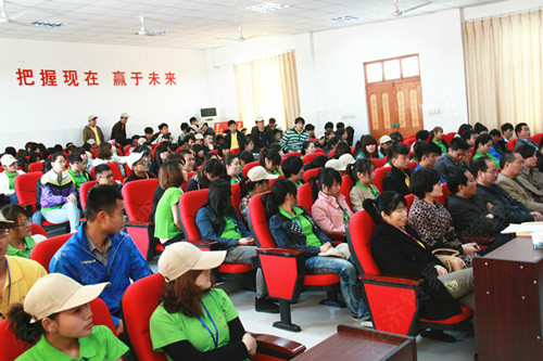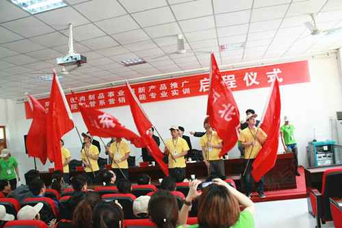 张胜副经理在致辞中指出,经过双汇集团肉制品事业部和经管系的积极筹划、认真准备,来自市场营销专业、连锁经营与管理专业的266名员工,即将分赴北京、上海等全国32个大中城市的双汇市场一线进行为期近三个月的营销技能综合实训。这是自2004年以来,经管系与双汇集团肉制品事业部第十届联合进行的公司产品改革活动,是公司校企合作、工学结合的典型范例。