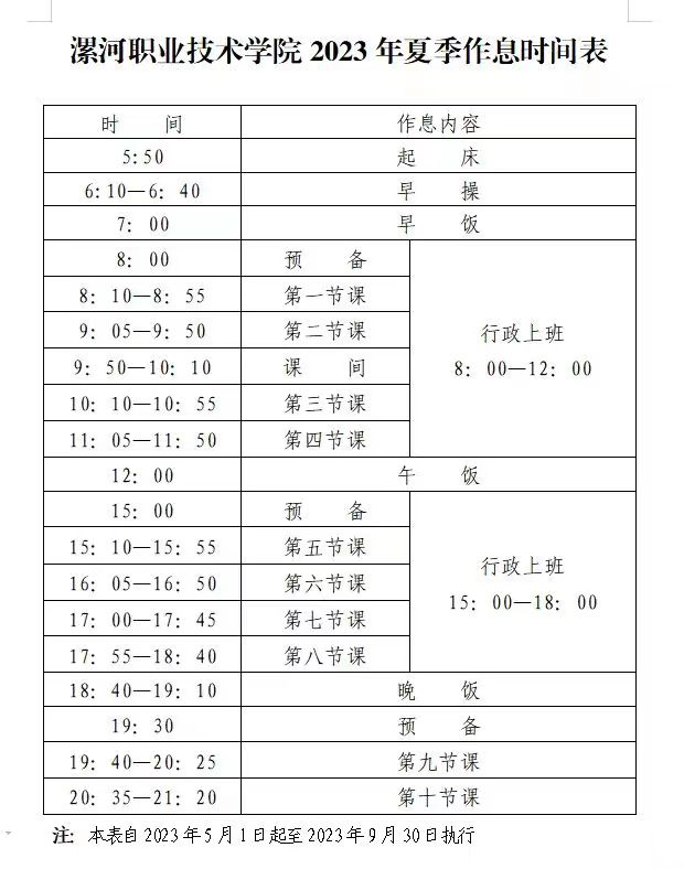 三、自5月1日起,执行夏季作息时间。