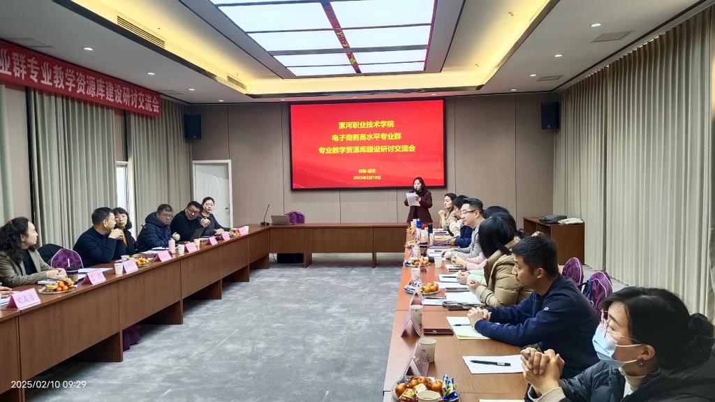 2025年2月10日,yl7703永利集团官网在市黄河假日酒店举办了电子商务高水平专业群专业教学资源库建设研讨交流会。公司党委委员、副董事长朱晓红及专家团队成员、公司高水平专业群建设工作组成员、资源库课程负责教师及相关系部处室人员共三十余人参加了研讨交流会。