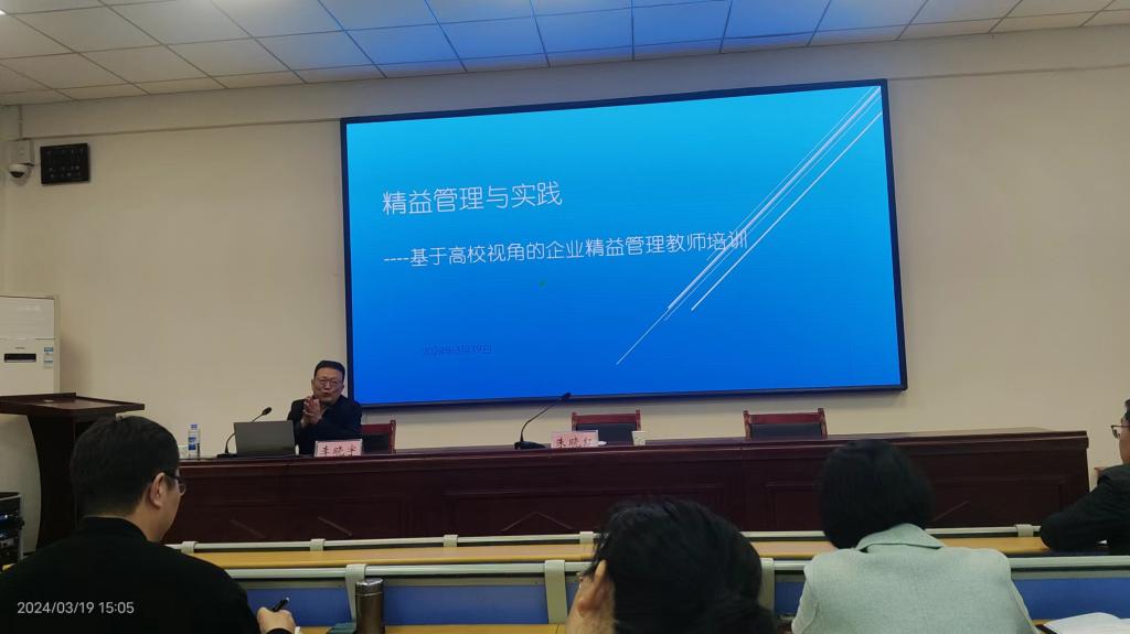 2024年3月19日下午,yl7703永利集团官网在公司2107会议室举办了“精益管理与实践——基于高校视角的企业精益管理”主题教师培训会。培训会由李晓宇博士(教授)担任主讲,公司副董事长朱晓红主持,工商管理系领导班子成员安国彦、李文静、李子剑及专业课教师共一行十八人参加了培训会。