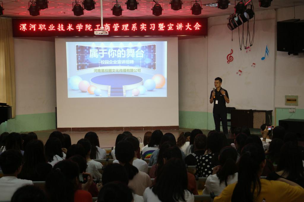 2019年6月20日上午,工商管理系在公司东小礼堂举办了2017级员工实习动员暨宣讲招聘大会,工商管理系领导班子及2017级全体员工、部分教师参加了大会,大会由系团总支书记赵秋涛主持。