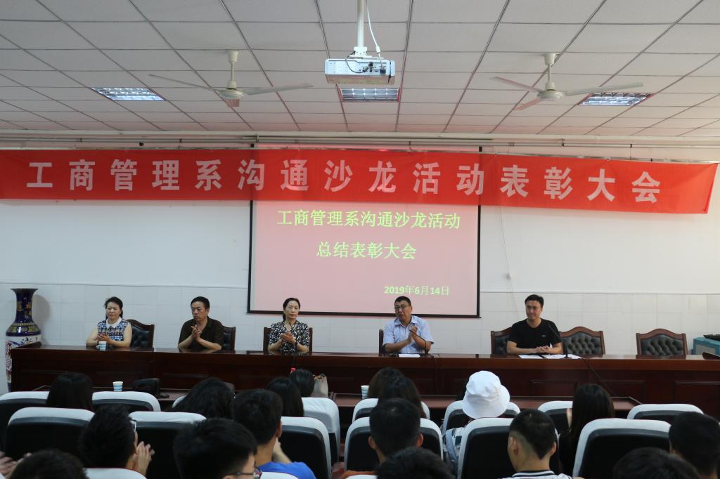 2019年6月14日下午,工商管理系在公司3101会议室举行了2018——2019学年第2学期沟通沙龙活动表彰大会,工商管理系主任夏俊华、系党总支书记安国彦、副主任李子剑、办公室主任黄晓喆及商务管理专业教师、2018级全体员工参加了表彰会,表彰会由系团总支书记赵秋涛主持。