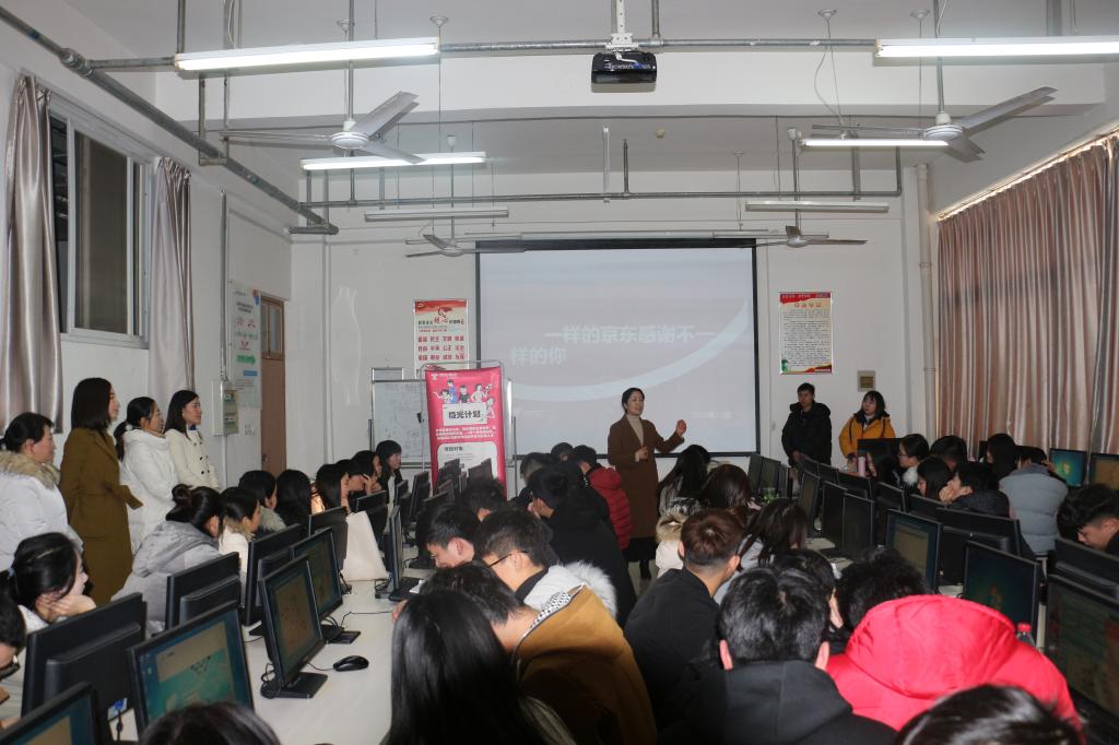 2018年12月18日下午,应京东华中区之约,工商管理系在二号实训楼2607室举行了京东实习总结会,京东华中区仓储部代表王青霞、人力资源部代表刘学强及工商管理系主任夏俊华、办公室主任黄晓喆、物流管理专业部分教师和2017级物流管理专业全体员工参加了总结会。