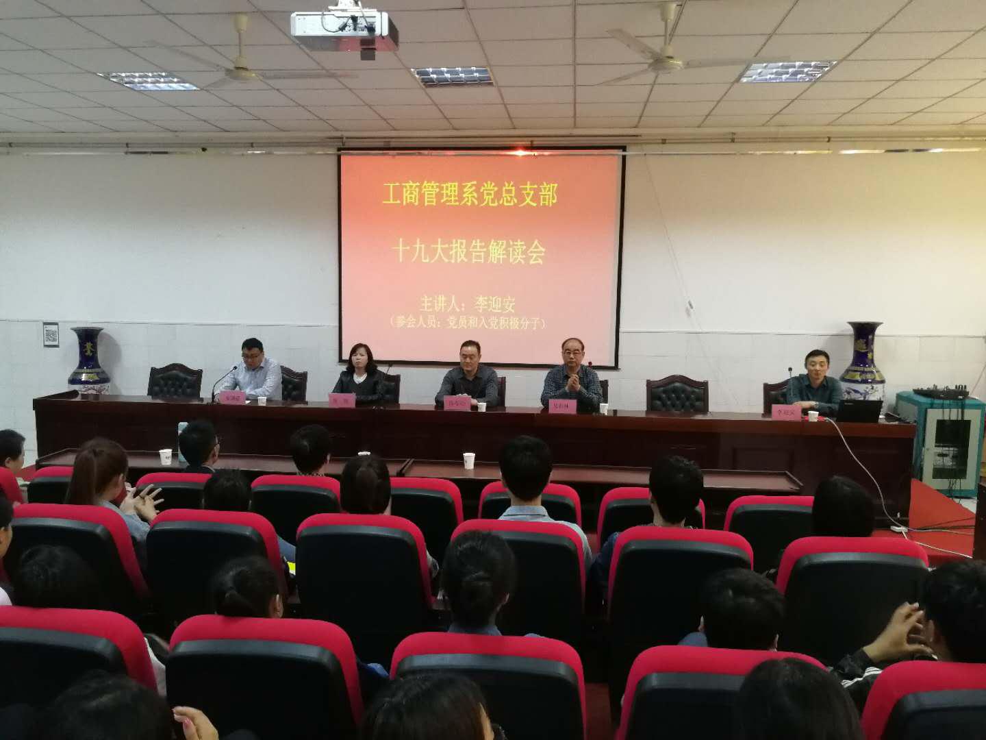工商管理系党总支书记安国彦也号召全系师生继续掀起学习十九大精神热潮,推动十九大精神入脑入心。他要求广大青年学子勇敢践行十九大精神,拥抱新时代,担当新使命,在实现伟大中国梦的生动实践中放飞青春梦想,为伟大祖国的腾飞做出自己的贡献。