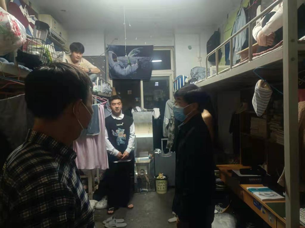 2022年4月4日闫主任召开系部员工干部之间的工作,安排部署疫情防控相关工作,投身于员工全员核酸检测的工作中,每天晚上进入员工宿舍关心员工们的生活,他联系辅导员每天关心同学们的体温及身体情况,完善员工们的“一生一档”,落实员工们晨午检、每天健康打卡,审核汇报员工信息,组织员工间隔一米核酸检测。