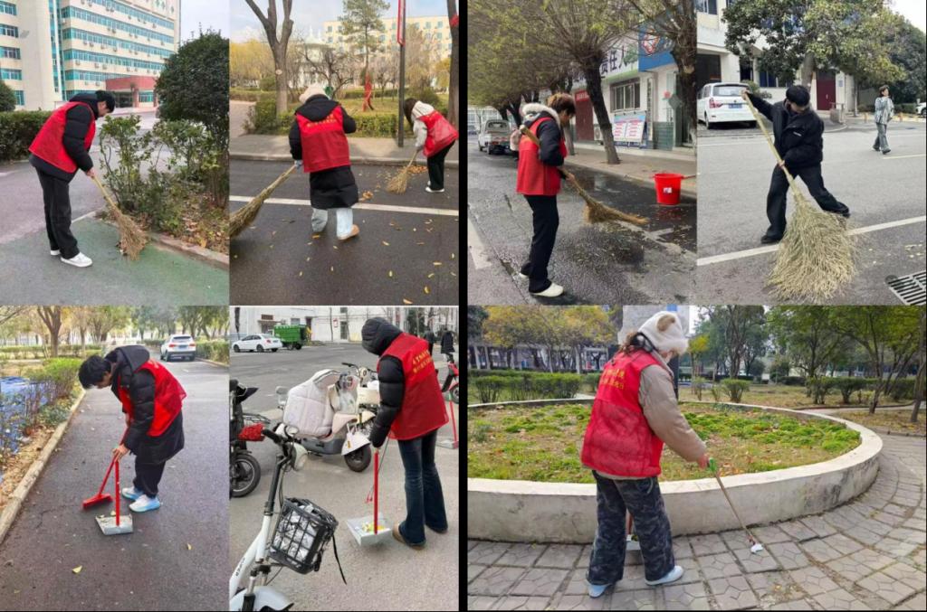 校园环境清扫组高效清理主干道及绿化带内大量落叶,确保道路整洁通畅;