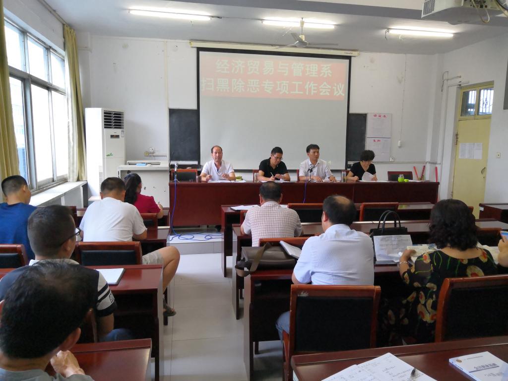 8月30日下午,经管系在1301会议室召开了扫黑除恶专项工作会议。会议由系主任兰涛主持,经管系全体老师参加了会议。