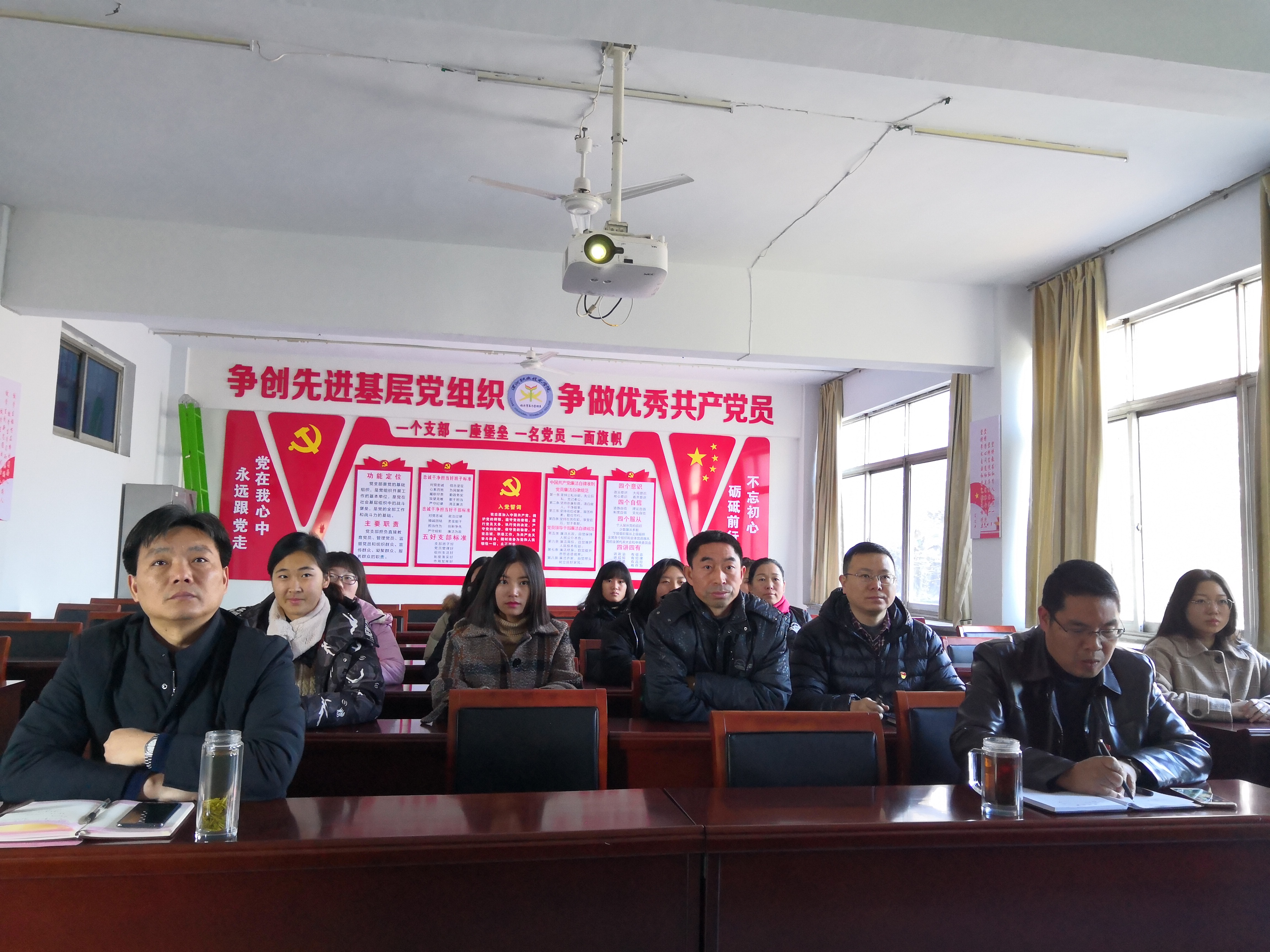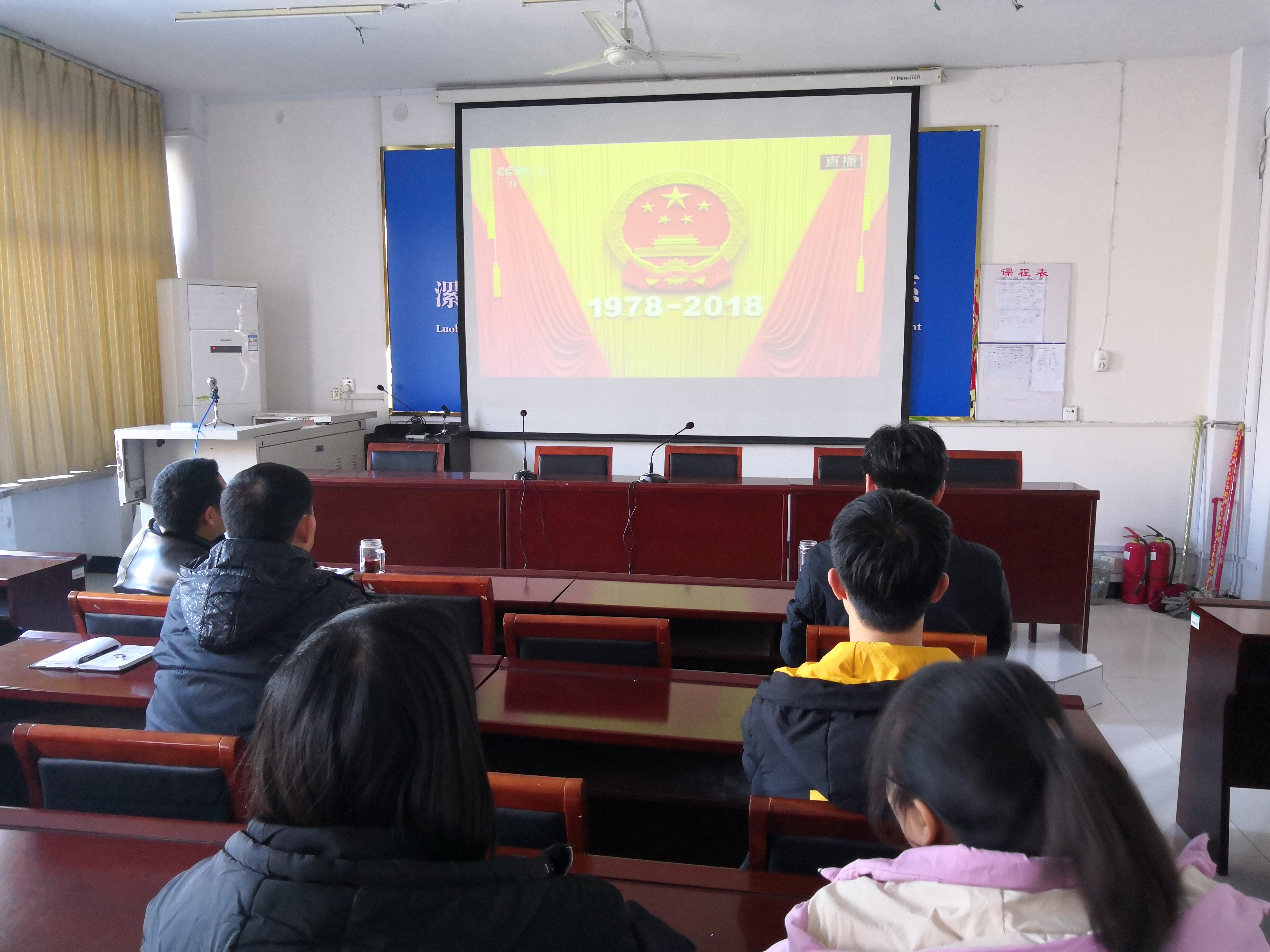 12月18日上午10点,双汇公司组织老师、员工预备党员和入党积极分子共30多人,在1301会议室观看了庆祝改革开放40周年大会。