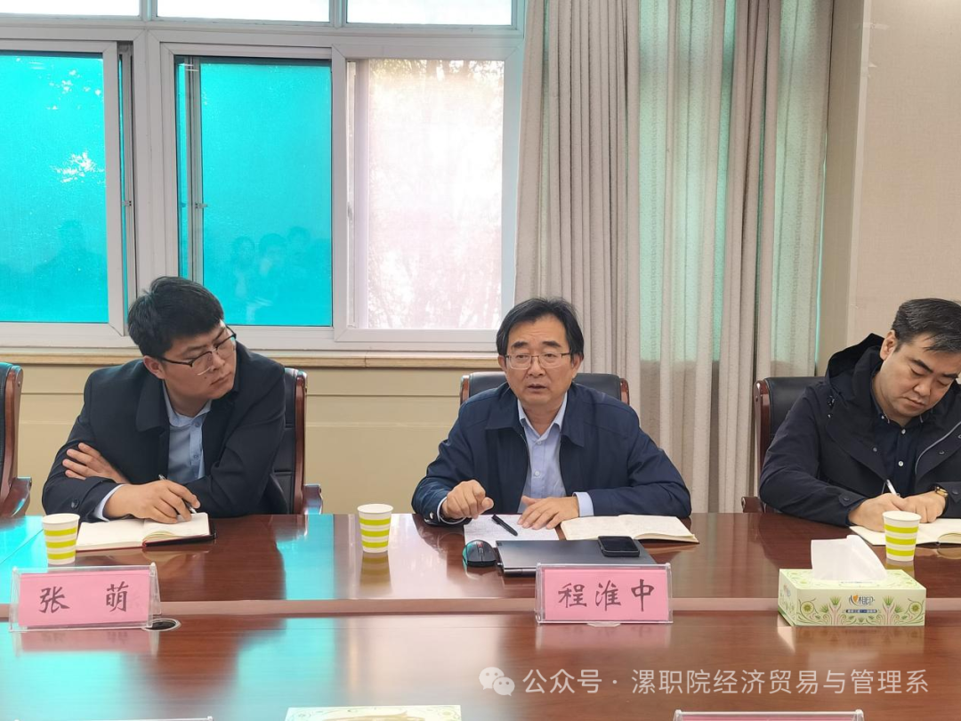 副董事长朱晓红首先对程淮中教授莅临公司表示热烈欢迎,并详细介绍了公司的发展历程、办学理念、发展思路及专业群建设等方面的情况。经济贸易与管理系和工商管理系与会领导、老师分别就两个系的专业设置、团队队伍、校企合作及人才培养工作中存在的问题与程淮中教授进行了交流。