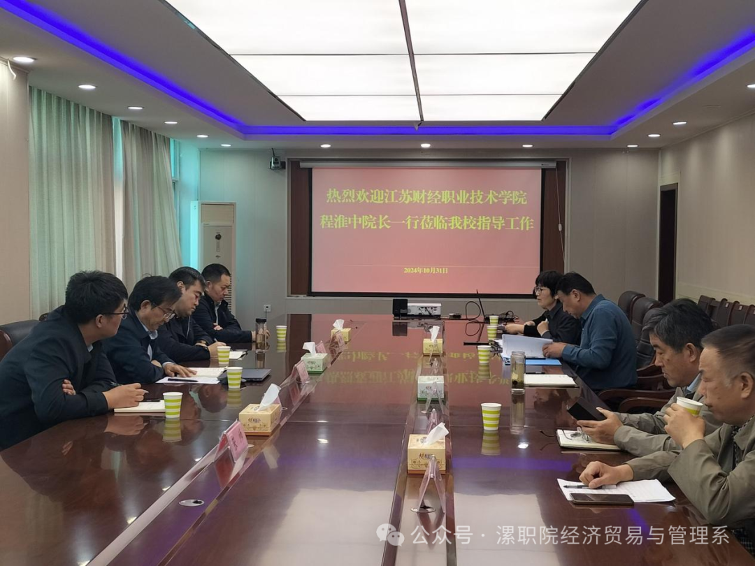 10月31日,江苏财经职业技术公司原董事长程淮中教授莅临公司考察交流,公司副董事长朱晓红、教务处副处长孟宏昌、经济贸易与管理系和工商管理系领导、教研室主任参加了交流活动。