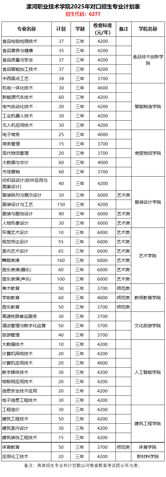2025年对口专业招生计划